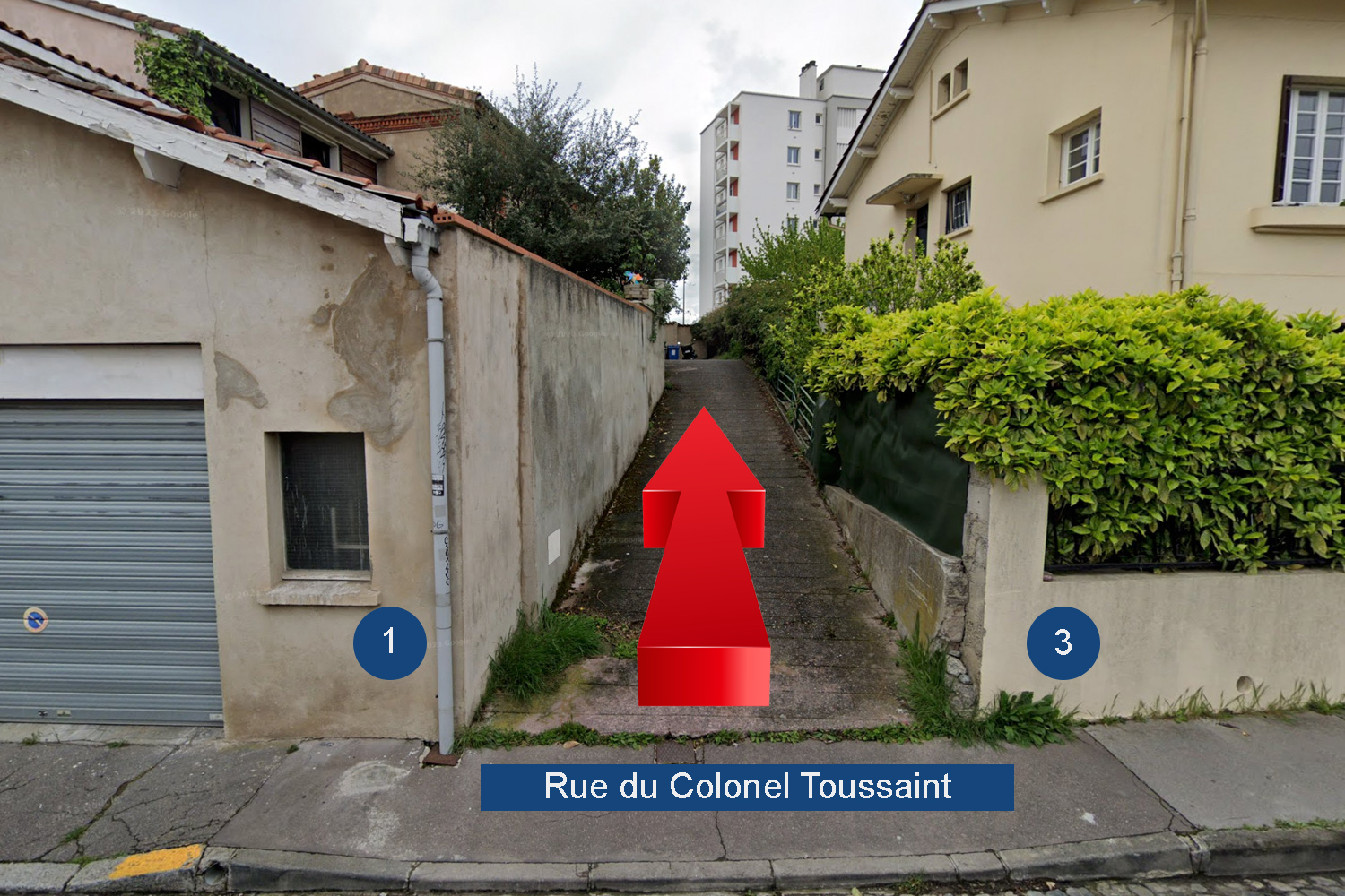 L’entrée se fait par la rue du Colonel Toussaint, entre les numéros 1 et 3